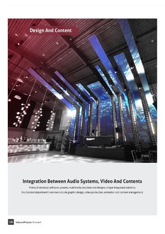 Our Content department’s services include graphic design, video production, animation and content management. screens, innovative lighting systems separately, providing unlimited dynamic décor.