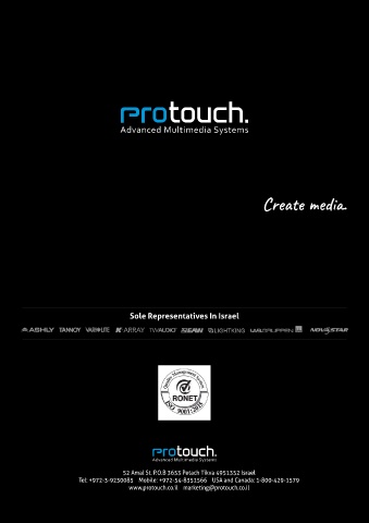 Create media. Sole Representatives In Israel 52 Amal St. P.O.B 3653 Petach Tikva 4951352 Israel Tel: +972-3-9230085 Mobile: +972-54-8351566 USA and Canada: 1-800-429-1579 www.protouch.co.il marketing@protouch.co.il