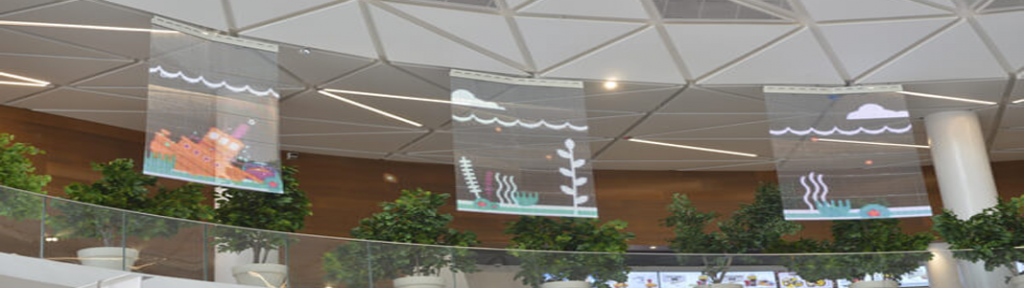 Oshiland transparent screens, Globus Max 60 square meters of transparent screens were installed on the top floor of the Oshiland Mall in Kfar Saba for Globus Max. Inspired by the Primark branch in Europe to create a public space that strives to maximize the visibility of the businesses and the entire complex. https://youtu.be/1wxe8hSeebA