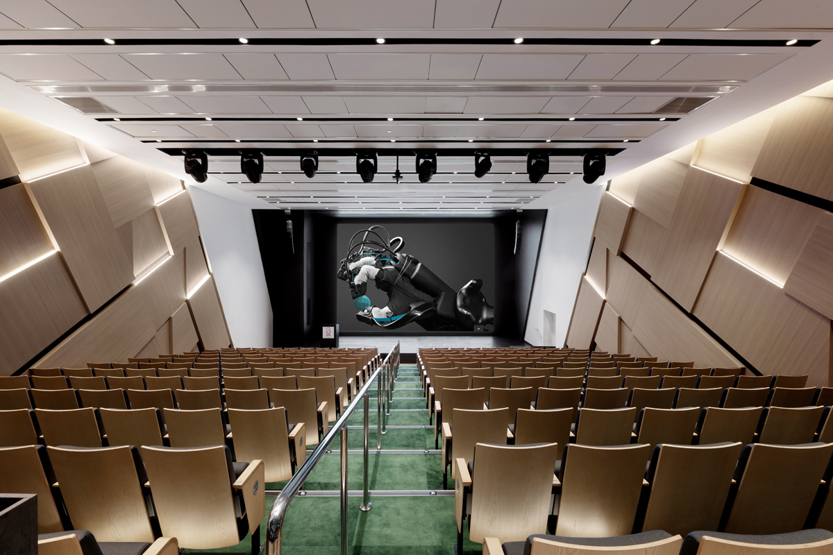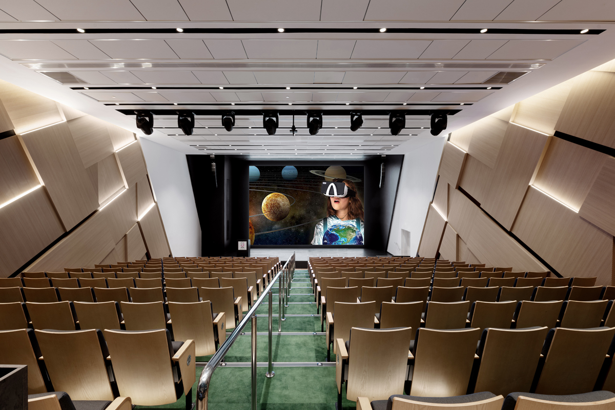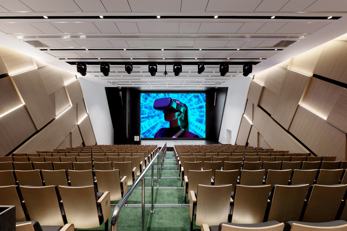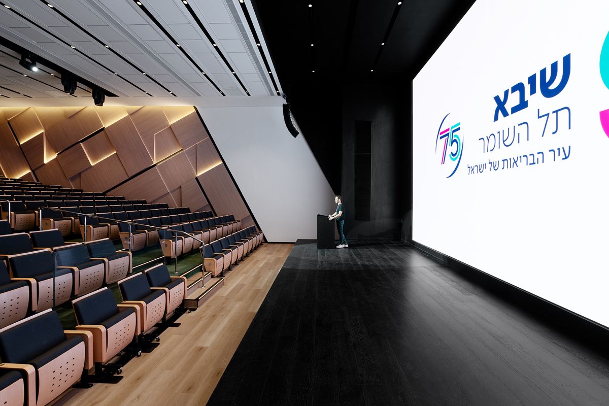 In the auditorium, a COB screen (finish and protection) 60 square meters, 1.5 pitch resolution.